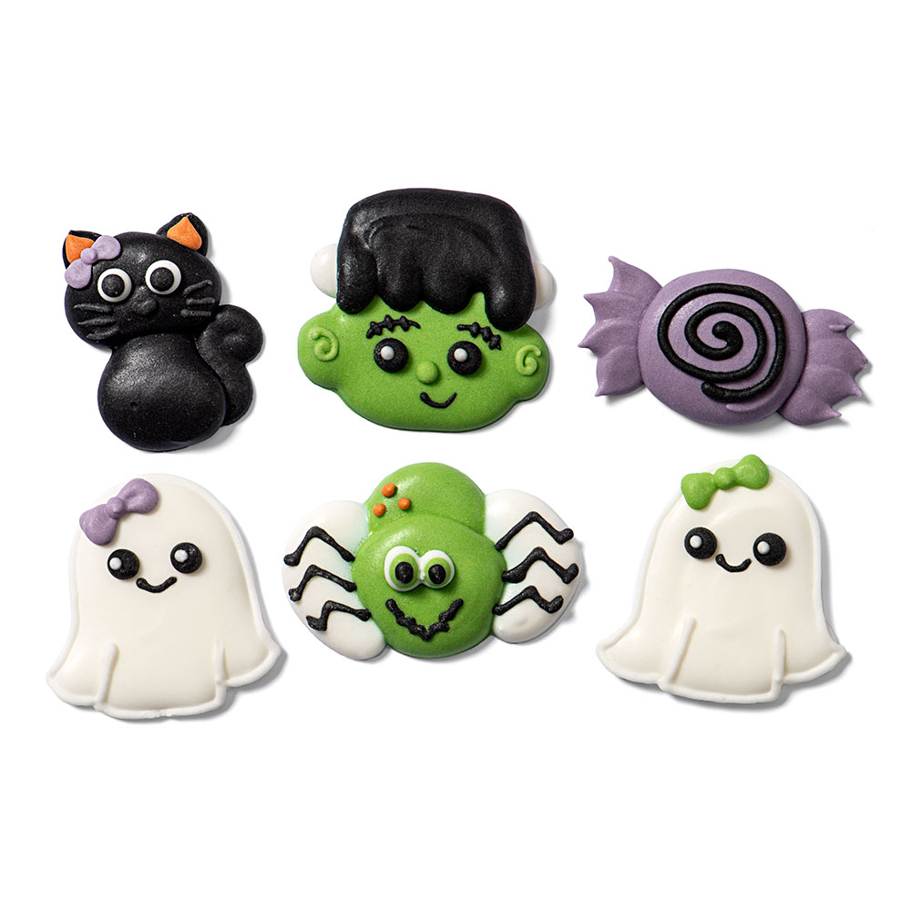 Ogni decorazione è realizzata con coloranti di estrazione naturale, garantendo non solo un aspetto accattivante ma anche un prodotto sicuro per tutti. Le figure raffigurano alcuni dei personaggi più amati e iconici di Halloween, come fantasmi, ragni, dolcetti, Frankenstein, e gatti neri. Perfette per rendere i tuoi dolci più creativi e colorati, queste decorazioni sono già pronte all’uso e non richiedono alcuna preparazione aggiuntiva.